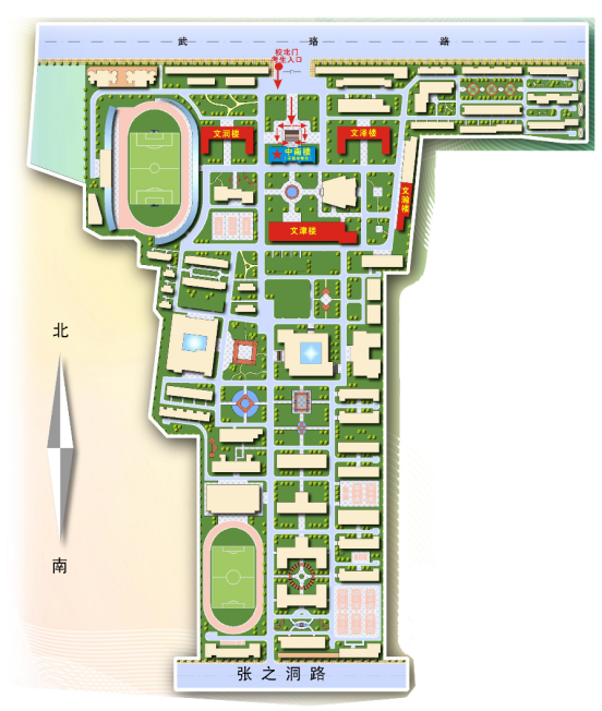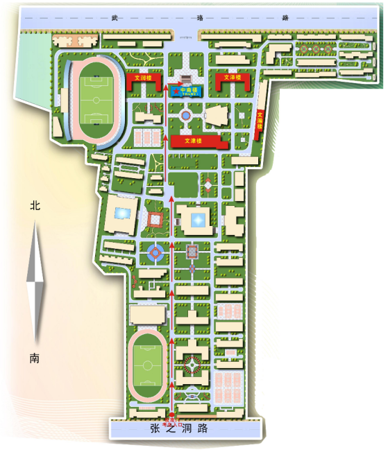 太阳集团8722c4月自学考试考场安排在首义校区文泽楼、文润楼、文津楼和文瀚楼(原首义校区自修学院楼)。根据考试安排,首义校区在考试期间进校通道为北门(武珞路)和南门(张之洞路)。考生可从首义校区南门或北门进入学校,进入学校后需先前往指定的手机存放点入口处(中南楼北门)排队存放手机,然后根据手机存放点出口处(中南楼南门)的各楼栋路线示意图前往各考点楼栋,参考路线图如下: