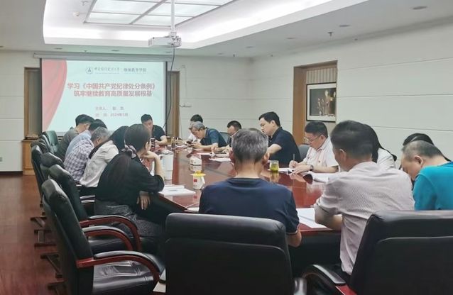 最后,赵凯同志总结强调,学院党支部要坚持把党纪学习教育融入日常工作,健全日常监督机制;学院全体党员干部要进一步强化纪律意识、加强自我约束,增强政治定力、纪律定力、道德定力、抵腐定力,结合业务工作梳理排查重点领域隐患,持续做好风险防控;要始终坚持探索“一融双高”融合式党建,做到“三个融合”——“将继续教育事业的发展目标与学校‘双一流’建设大局、国家建设教育强国学习型社会建设相关工作要求相融合”,“将干部干事创业的角色定位与发挥党员的先锋模范作用相融合”,“将校内外资源、行业内外资源、党建及业务资源聚集融合”,在继续教育事业高质量发展的进程中勇担时代重任、奋力开拓新局。