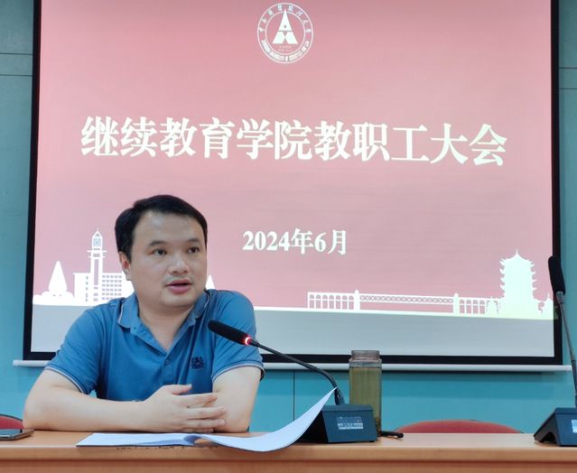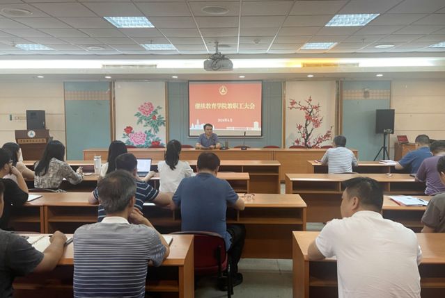 (通讯员 鲁雯 摄影 王磊)6月27日下午在中南楼6楼会议室,继续教育学院迎来了学期末全院教职工大会,会议由院长赵凯主持。